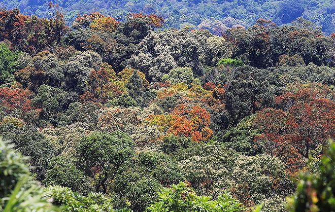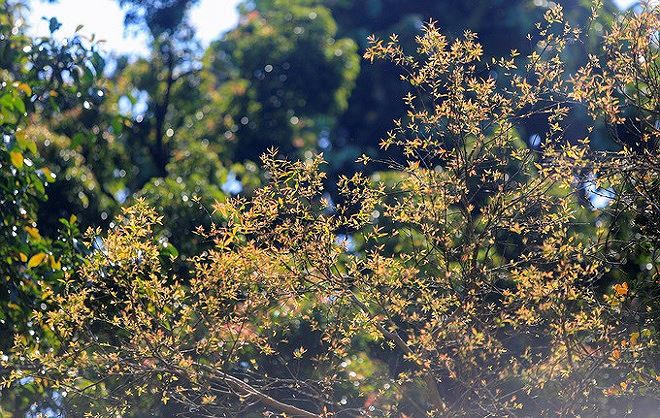 Những cây cổ thụ trổ lộc non xanh, đỏ hay những cây lim xẹt nở rộ hoa vàng, đã biến những góc rừng Sơn Trà, Đà Nẵng như bức tranh.