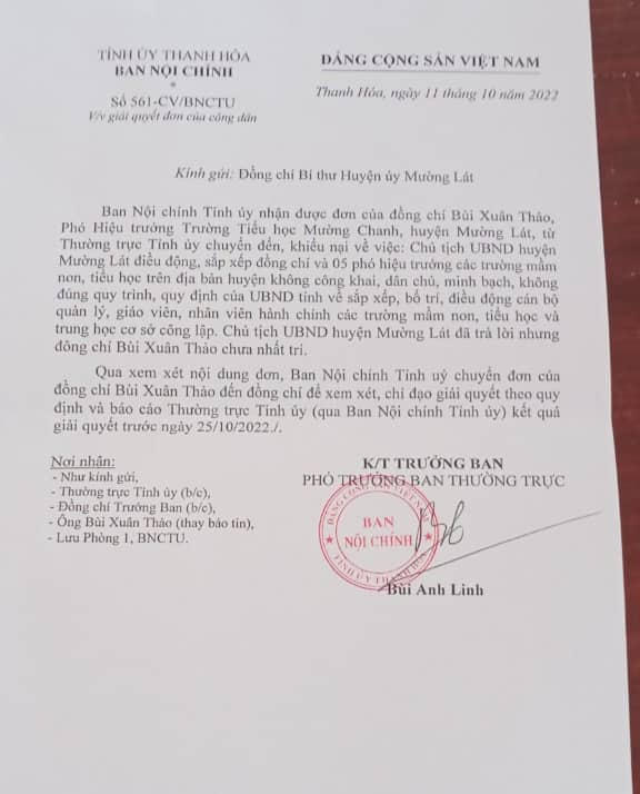 Ban Nội chính, Đoàn ĐBQH tỉnh Thanh Hoá yêu cầu Chủ tịch huyện Mường Lát báo cáo vụ luân chuyển hàng loạt giáo viên