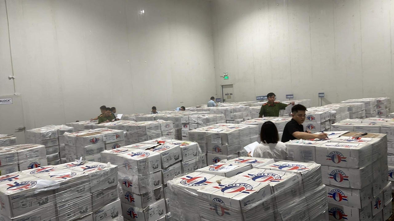 Cụ thể tại thời điểm kiểm khám lô hàng hóa móng giò lợn đông lạnh của Công ty cổ phần sản xuất thương mại dịch vụ Nam Khải Phú đã hết hạn sử dụng đang gửi bảo quản, lưu giữ tại Kho Lạnh SK3 thuộc Công ty Cổ phần ống thép Hà Nội, địa chỉ: Khu công nghiệp Quang Minh, thị trấn Quang Minh, huyện Mê Linh, thành phố Hà Nội.