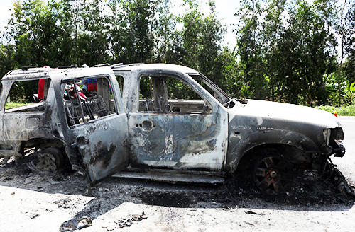 Chiều 17/10, thiếu tướng Hồ Sỹ Tiến - Cục trưởng Cảnh sát Hình sự (C45, Bộ Công an) - cho biết đã bắt được 6 nghi can liên quan đốt ôtô giám đốc đang chạy ở Hậu Giang gần hai tuần trước. "Bước đầu các nghi can khai nhận do mâu thuẫn trong gia đình nên đã gây án", thiếu tướng Tiến nói. Theo điều tra ban đầu, người con gái của ông Trần Văn Ri (74 tuổi, Giám đốc Công ty thức ăn thủy sản ở huyện Bình Chánh, TP HCM) đã thuê nhóm người theo dõi, chặn đường đánh dằn mặt bà Võ Thị Chiến (42 tuổi, trợ lý ông Ri). Nhưng nhóm người này đã ra tay quá đà, đốt ôtô khiến ông Ri tử vong.