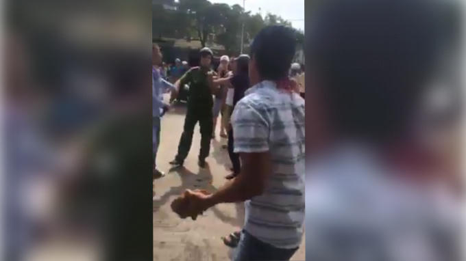 Lúc này, một chiến sĩ công an đã dùng gậy gỗ hỗ trợ đập vào đầu khiến nam thanh niên bị chấn thương, chảy máu tại vùng đầu và ngay sau đó cuộc hỗn chiến xảy ra.