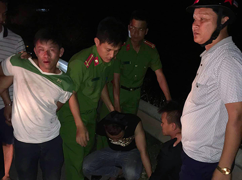 Hàng chục cảnh sát hình sự lập tức nhảy xuống vây bắt. Bốn tên cướp to khỏe, hung hãn, người nồng nặc hơi men định nhảy lên xe máy bỏ chạy nhưng không thành. Chúng liền cầm đá, kiếm chống trả. Trinh sát quật ngã từng tên xuống đường, tước kiếm, còng tay. Cuộc vật lộn kéo dài hàng chục phút, nhiều cảnh sát bị trầy xước, một người bị thương phải tới bệnh viện điều trị.