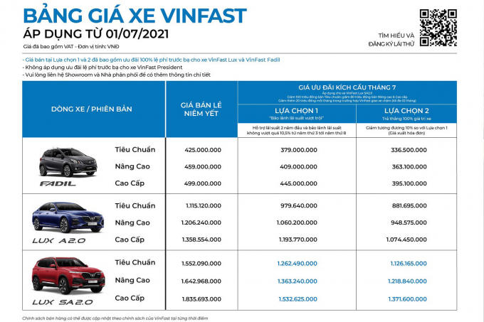 Bảng giá ôtô VinFast tháng 7/2021: Nhiều chương trình ưu đãi giảm giá