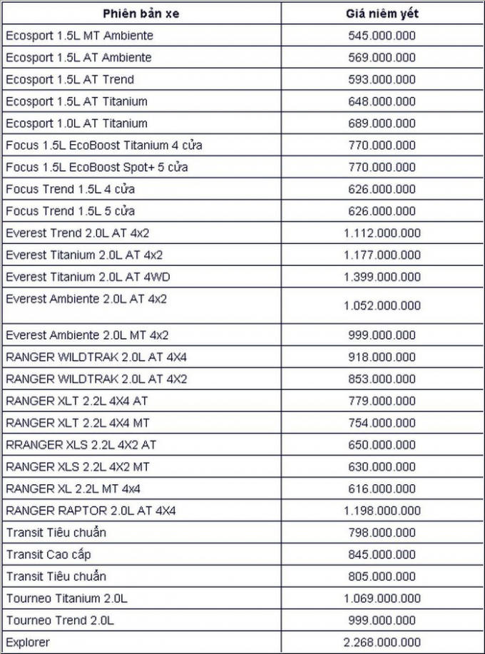 Mới đây, Ford Việt Nam đã công bố giá bán mới nhất cho các mẫu xe tại thị trường Việt tháng 11/2019.