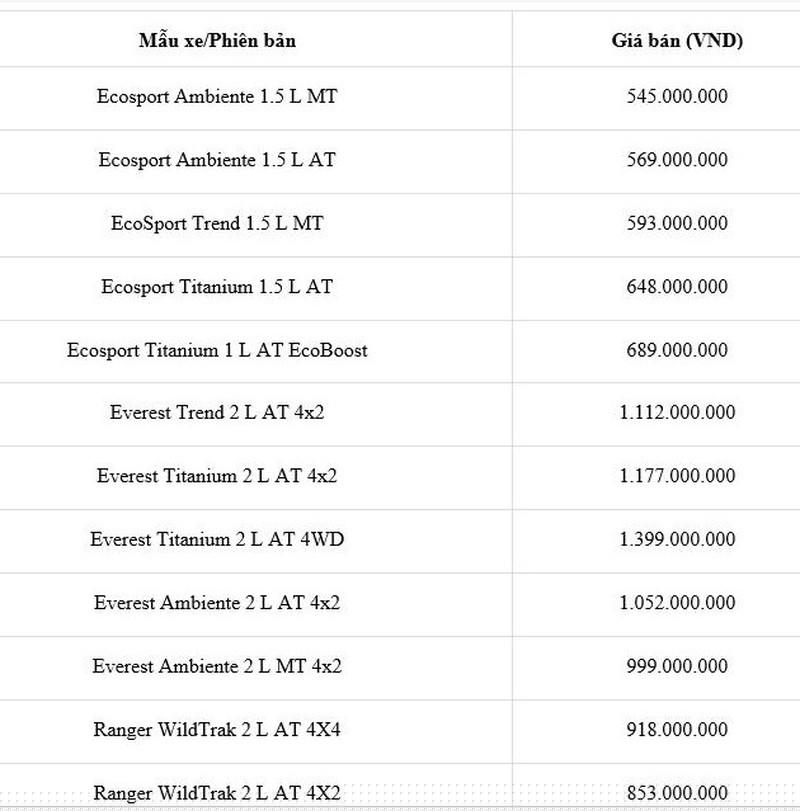 Cũng như các hãng ô tô khác, giá xe Ford vẫn giữ ổn định so với các tháng trước.