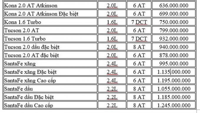 Mẫu xe có giá cao nhất chính là mẫu xe được nhiều người săn đón Hyundai SantaFe với giá 995-1.245 triệu đồng.