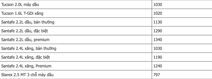 Bảng giá xe tham khảo tháng 3/2022.