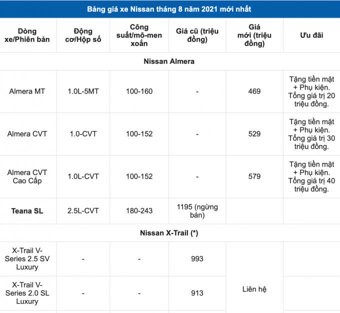 Bảng giá xe Nissan tháng 8/2021: Ra mắt sản phẩm Almera mới
