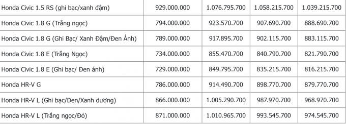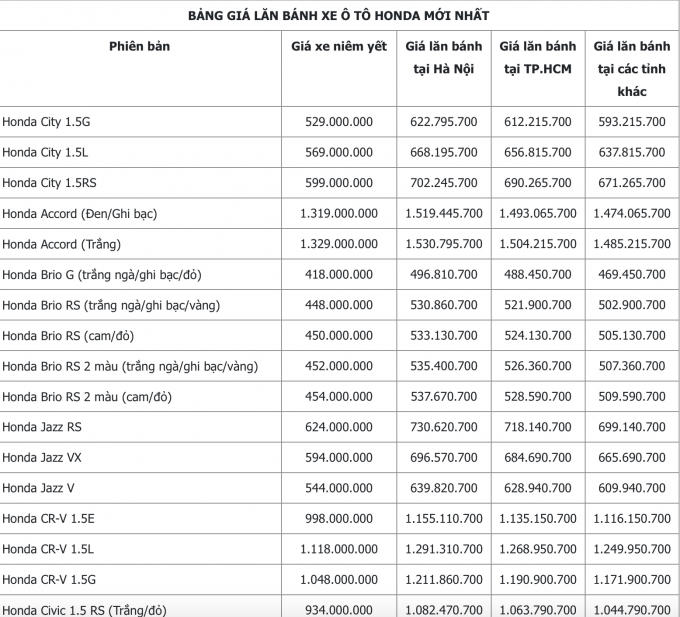 Bảng giá xe ô tô xe ô tô Honda Accord, Brio, Civic, City, HR-V, CR-V, Jazz... mới nhất tháng 7/2021 tại Việt Nam.