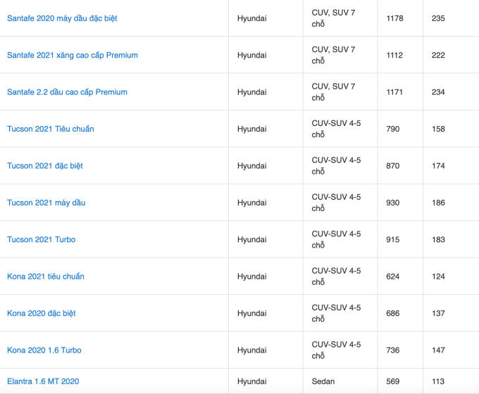 Bảng giá xe ô tô Hyundai tháng 1/2022 tham khảo.