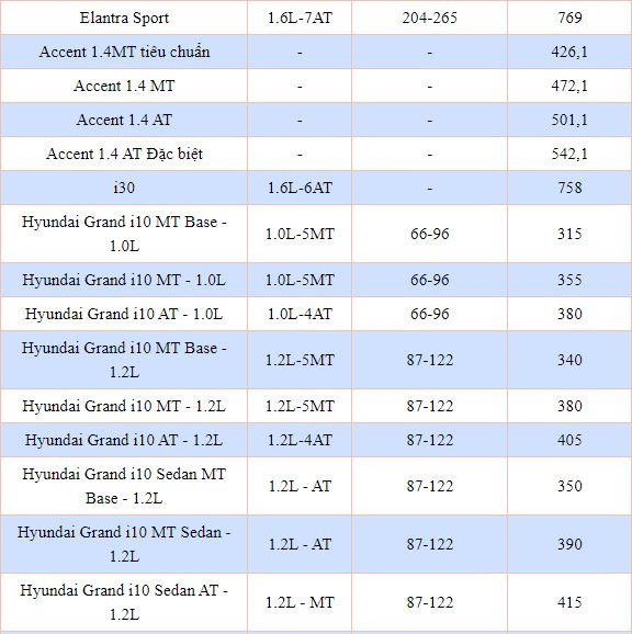 Trong tháng 5/2020, giá bán hầu hết của các mẫu xe Hyundai không thay đổi. Giá xe Hyundai Grand i10 giữ nguyên dao động ở mức 315 triệu đồng - 415 triệu đồng cho 9 phiên bản.