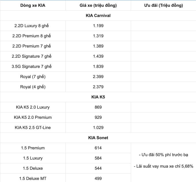 Cập nhật bảng giá xe Kia 2022 mới nhất tại Việt Nam như: Ô tô Kia Morning, Seltos, K3, Carnival, K5, Soluto, Rio, Optima, Rondo, Sorento, Sedona... tháng 1 năm 2022.