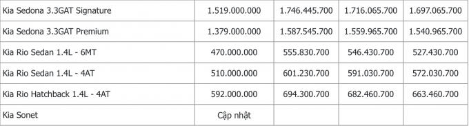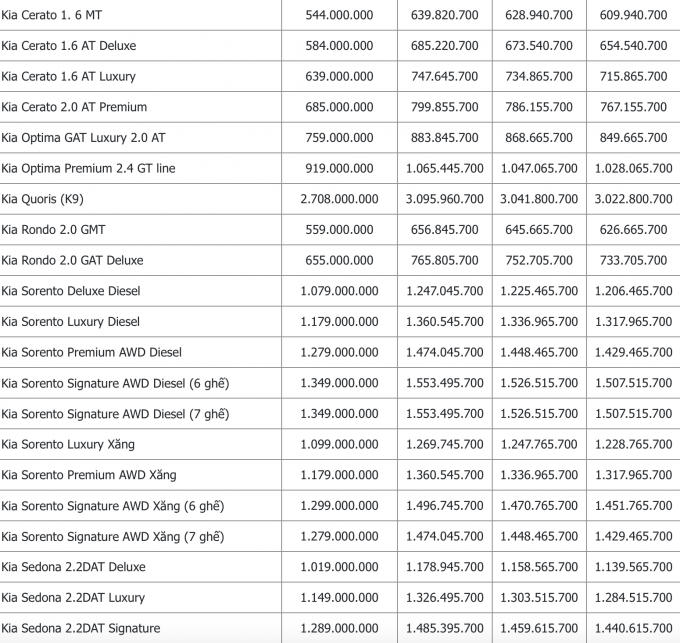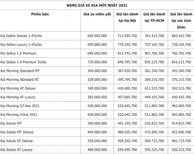 Bảng giá xe Kia tháng 8/2021. Lưu ý bảng giá xe chỉ mang tính chất tham khảo.