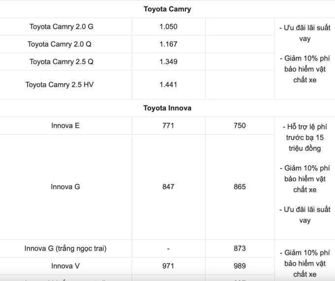 Cập nhật bảng giá xe Toyota tháng 2/2022 bao gồm: Giá xe ô tô Toyota Vios , Toyota Fortuner, Toyota Corolla Cross, Toyota Avanza, Toyota Innova, Toyota Rush, Toyota Corolla Altis, Toyota Wigo, Toyota Camry, Toyota Hilux.
