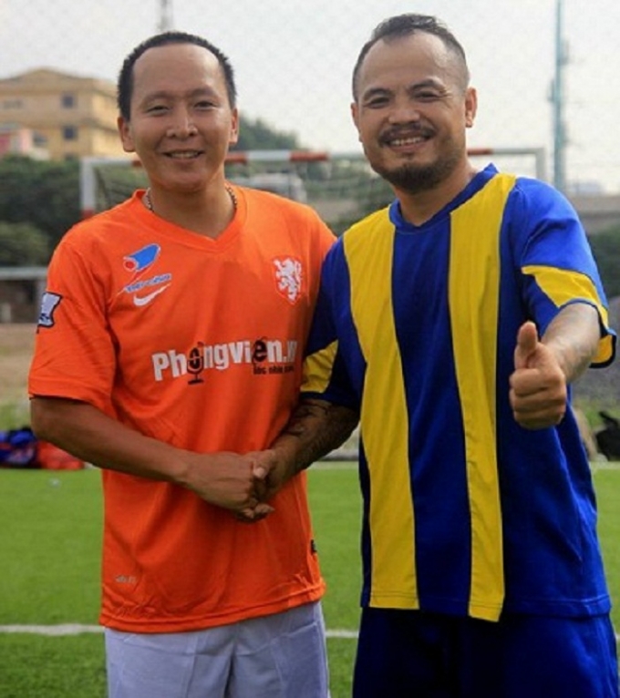 | Ca sỹ Trần lập chụp ảnh lưu niệm với nhà báo của CLB Bóng đá FC Phóng viên Việt Nam tại Cúp Tứ hùng năm 2015. |