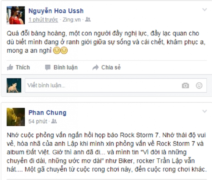 | Sau khi thông tin ca sỹ Trần Lập qua đời được đăng tải, cộng đồng mạng đã bày tỏ niềm tiếc thương vô hạn đối với ca sỹ của Boogn hồng thủy tinh. Ảnh: Facebook. |