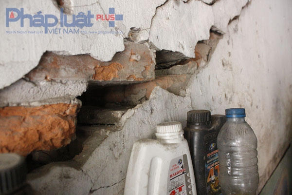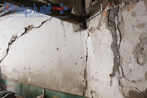 Sau một hồi trò chuyện, ông Thuỷ đứng dậy dẫn chúng tôi đi một vòng chung quanh ngôi nhà và chỉ cho chúng tôi thấy những vết nứt, những cây gỗ đã mục ruỗng nhìn có thể sập bất kỳ lúc nào.
