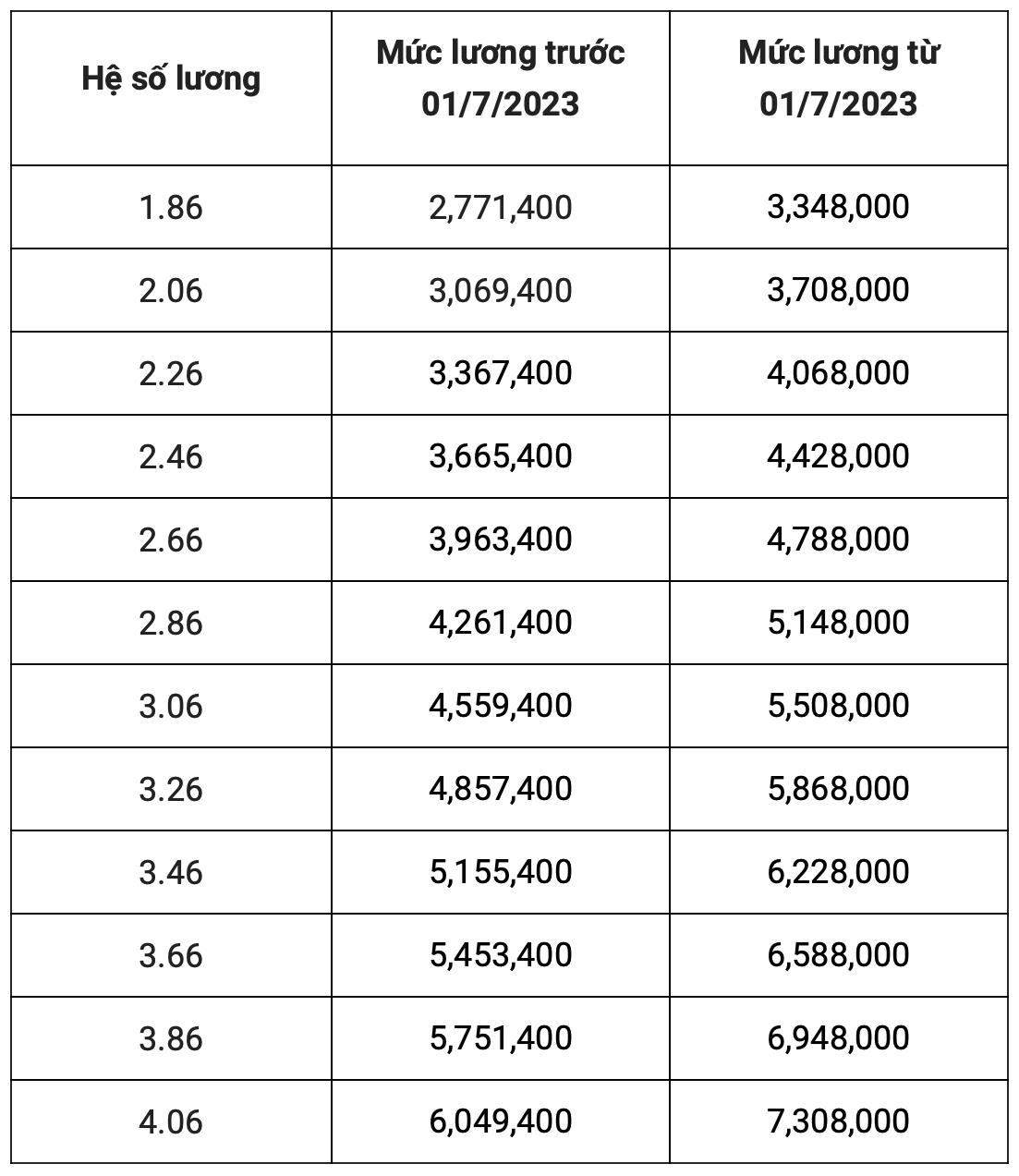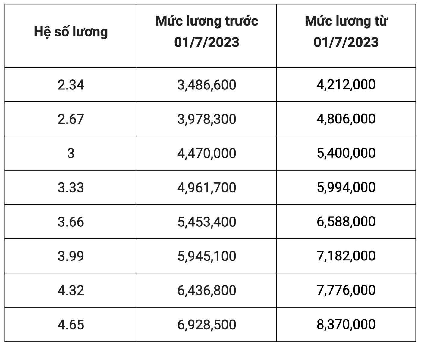 Mức lương cơ sở cho cán bộ, công chức, viên chức sẽ tăng lên 1.800.000 đồng/tháng kể từ ngày 01/7/2023.
