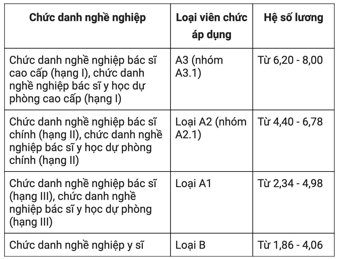 Theo đó, bảng lương bác sĩ, bác sĩ y học dự phòng năm 2023 như sau: