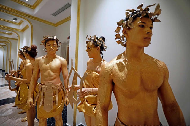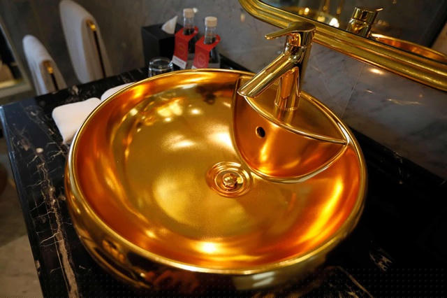 Đây được xem là một trong những khách sạn hiếm hoi trên thế giới dát vàng cả bên trong và bên ngoài công trình. (Ảnh: Luong Thai Linh / EPA)