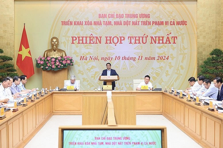 Phát biểu mở đầu phiên họp, Thủ tướng Phạm Minh Chính khẳng định: Trong chuỗi các hoạt động của Tháng vì người nghèo, Phiên họp thứ nhất Ban Chỉ đạo Trung ương triển khai xoá nhà tạm, nhà dột nát trên phạm vi cả nước có ý nghĩa quan trọng để định hướng cách làm, tháo gỡ vướng mắc, bảo đảm thực hiện thành công của Chương trình xoá nhà tạm, nhà dột nát trên phạm vi cả nước trong năm 2025.