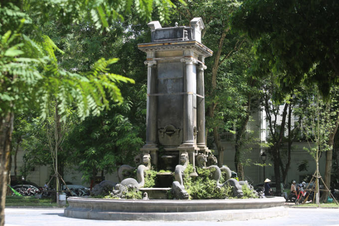 Đài phun nước tại vườn hoa Diên Hồng (Vườn hoa Con Cóc) là sự kết hợp tinh xảo của văn hóa phương Đông và phương Tây, sau nhiều năm tháng, đài phun nước có biểu hiện xuống cấp. Ảnh: Lê Phú/Báo Tin tức