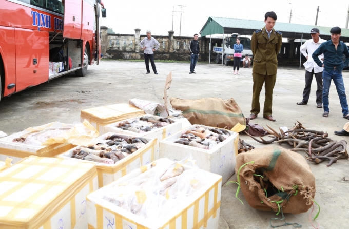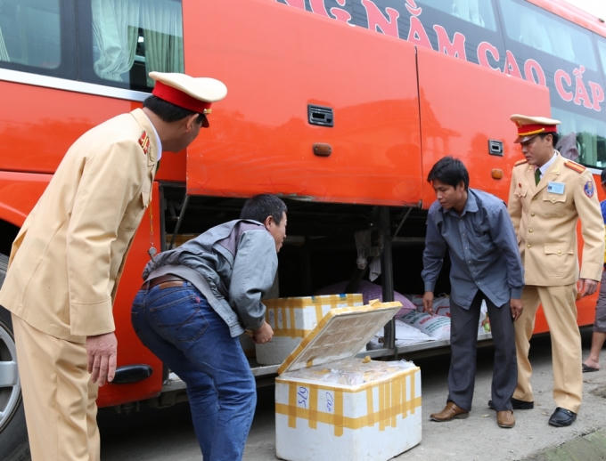 Cụ thể, ngày 4/1, trên QL1A, đoạn qua địa bàn xã Kỳ Thọ, H.Kỳ Anh (Hà Tĩnh), qua kiểm tra xe khách 37B - 005.33 chạy tuyến Nghệ An - TP.HCM do tài xế Vũ Văn Tình (44 tuổi, ngụ Nghệ An) cầm lái, lực lượng Phòng CSGT Công an tỉnh Hà Tĩnh phát hiện 15 thùng xốp và 2 bao tải chứa đầy nội tạng, chân bò, sừng động vật (tổng trọng lượng hơn 1 tấn) đã bốc mùi hôi thối.