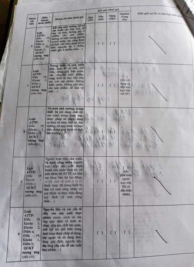 Bà Thu cũng cho rằng từ nguyên nhân trên nên đoàn không thẩm định các chỉ tiêu đánh giá khác được ghi trong mẫu biên bản như: Địa điểm sản xuất; trang thiết bị sản xuất; người trực tiếp sản xuất; nguyên liệu và các yếu tố đầu vào; bao gói, ghi nhãn, bảo quản vận chuyển; ghi chép và truy xuất nguồn gốc….