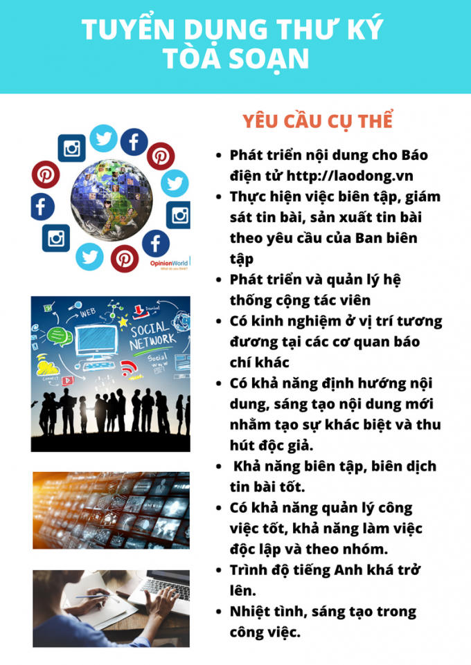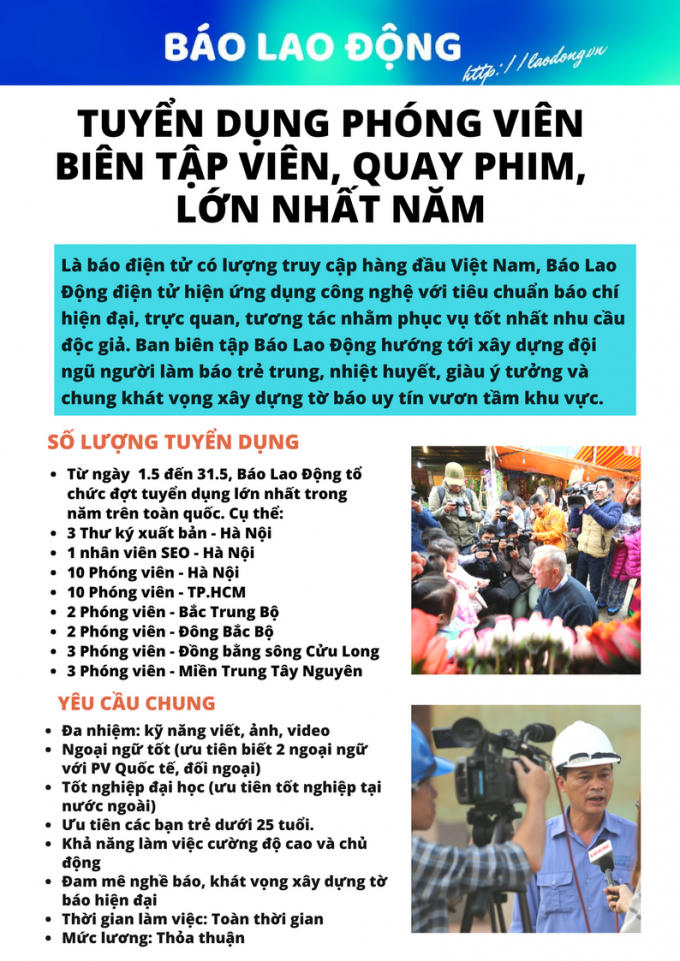 Báo Lao Động điện tử tuyển dụng phóng viên, biên tập viên, quay phim... lớn nhất năm