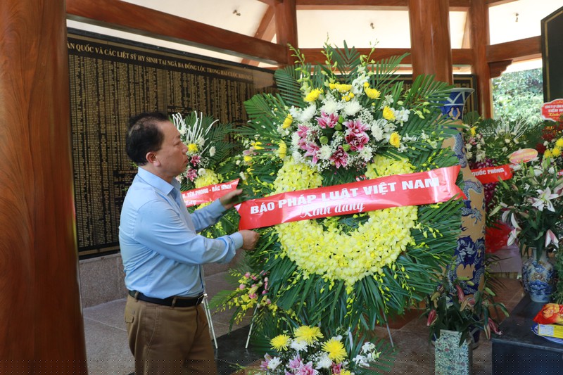 Dưới cái nắng như đổ lửa của miền Trung những ngày tháng 7, lãnh đạo, cán bộ phóng viên nhiều thế hệ của Báo PLVN dâng hoa, báo công trước anh linh các anh hùng liệt sĩ tại Khu di tích lịch sử ngã ba Đồng Lộc.