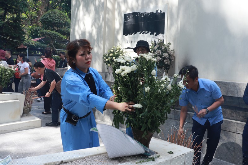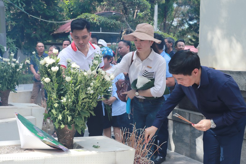 Đoàn dâng hương từng mộ phần 10 nữ thanh niên xung phong, những người đã hiến trọn tuổi thanh xuân để nối liền mạch máu giao thông “Hậu phương lớn”,“tiền tuyến lớn”, góp phần làm nên ngày toàn thắng.