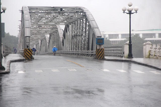 Cầu Trường Tiền đầu giờ chiều 14/11 thưa thớt người di chuyển. Ảnh: Báo Thừa Thiên Huế.
