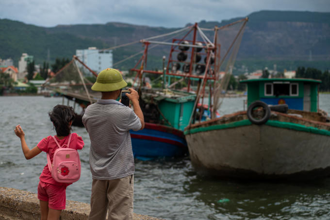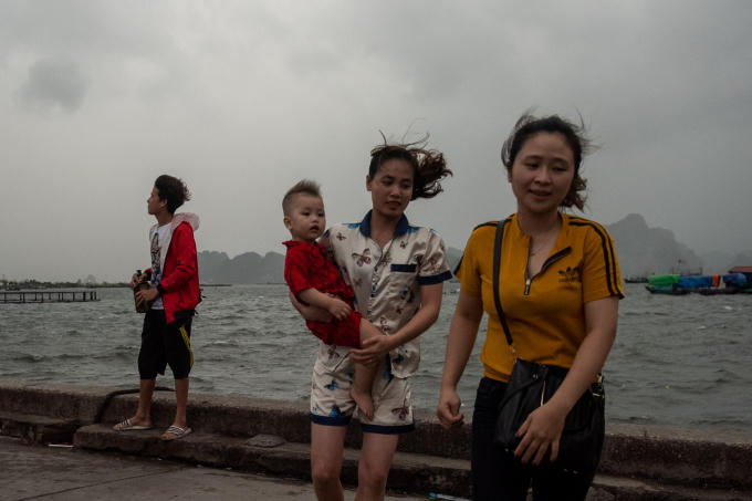 Một số người dân tại khu vực Bến Do vẫn ra biển hóng gió check in trước khi cơn bão đổ về.