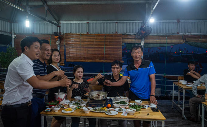 Gia đình anh Ngô Thanh Long (Hạ Long, Quảng Ninh) tổ chức sinh nhật tại một nhà hàng nổi ven biển. Anh cho biết tuy đã có những ảnh hưởng ban đầu của bão số 2 nhưng cường độ chưa đủ lớn để gây ảnh hưởng đến sinh hoạt hàng ngày.