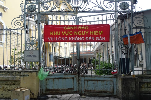Để đảm bảo an toàn, bảo tàng căng băng rôn cảnh báo "khu vực nguy hiểm", đề nghị người dân không đến gần hàng rào và cổng.