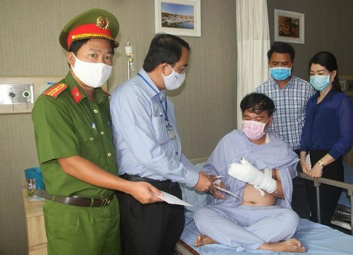 Đại diện UBND và Công an TP Biên Hòa đến thăm hỏi, động viên anh Đáng.