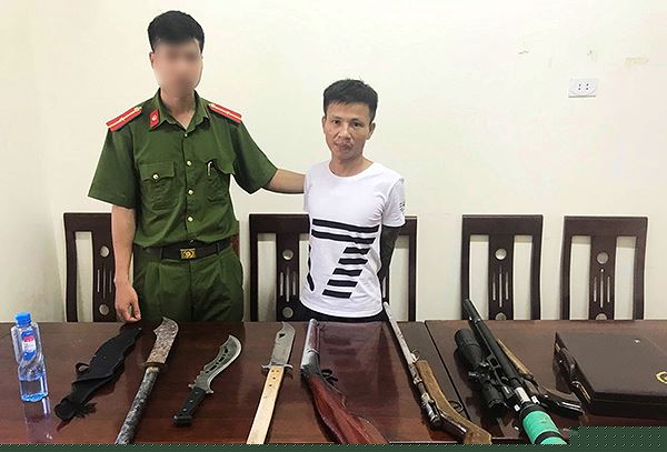 Tiến hành khám xét nơi ở của Mạnh, công an thu giữ 4 khẩu súng tự chế, 3 mã tấu. Được biết, Mạnh đã có 6 tiền án, tiền sự về tội gây rối trật tự công cộng và tàng trữ trái phép ma túy.