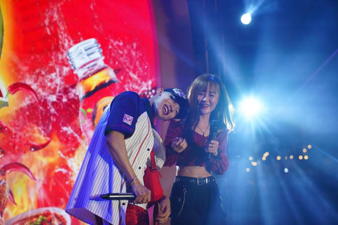 Cả sân khấu với hàng vạn khán giả trẻ như muốn vỡ tung và say ngây ngất khi cặp đôi nổi tiếng này trình diễn “bản hit trăm triệu view” Mượn Rượu Tỏ Tình. Không khí Lễ hội Phố Hàng Nóng đã được đẩy lên tới độ nóng cực đỉnh.