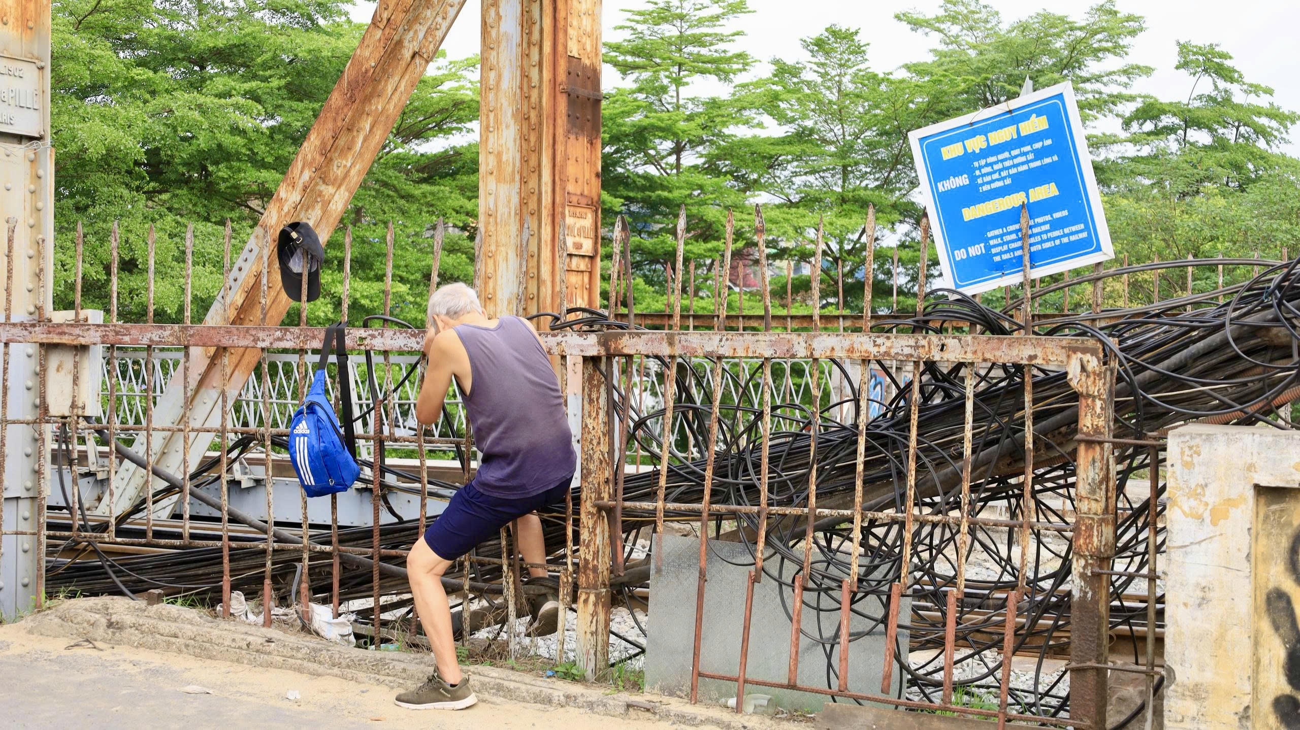 Dù cầu Long Biên đã cấm lưu thông để sửa chữa, nhiều người dân vẫn bất chấp rào chắn, liều lĩnh vượt qua công trường đang thi công.