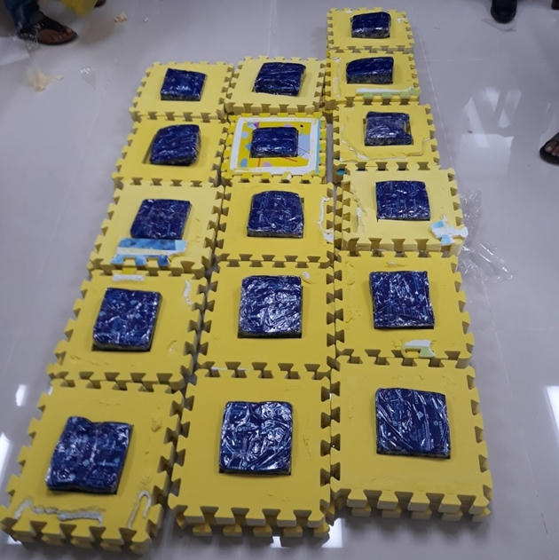 Trước đó, lúc 16h ngày 17/7, tại máy soi hàng hóa luồng nhập cảnh CKQT Mộc Bài, Chi cục Hải quan phối hợp với Trạm Biên phòng CKQT Mộc Bài phát hiện trong túi hành lý đồ chơi ghép hình của đối tượng Hàng Quốc Khánh, (SN 1981, thường trú xã Bình An, huyện Kiên Lương, Kiên Giang, là phụ xe ô tô Công ty xe khách liên vận Danh Danh), có cất giấu các chất tinh thể rắn màu trắng khối lượng khoảng 8kg.