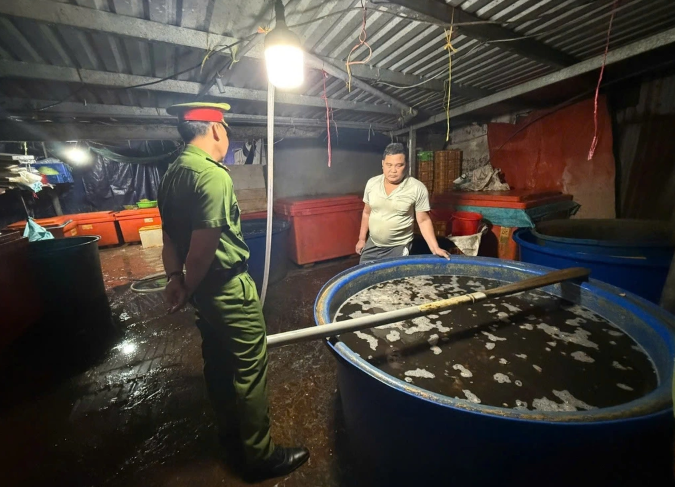 Trước đó, Phòng Cảnh sát kinh tế tiến hành kiểm tra cơ sở sơ chế thực phẩm tại số 60 Rạch Cát Bến Lức, phường Bình Đông.