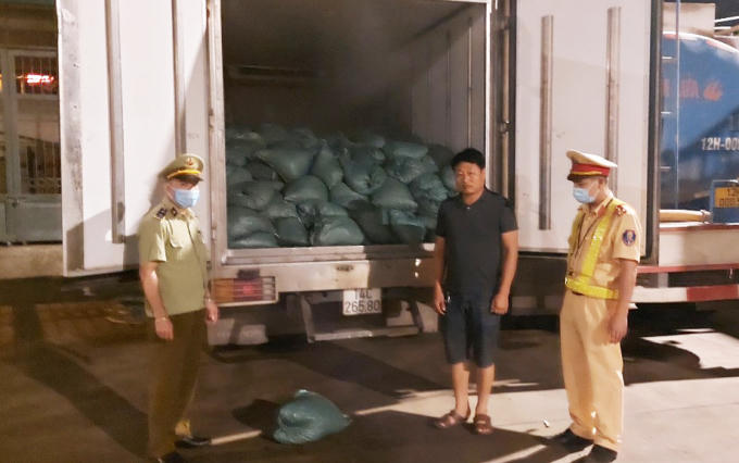 Theo đó, khoảng 22h ngày 27/4, Đội QLTT số 3 phối hợp với Đội CSGT số 3 (Công an tỉnh) trong quá trình làm nhiệm vụ đã phát hiện và bắt giữ xe tải biển kiểm soát soát 14C- 265.80, do lái xe Tăng Đậu Sồi (SN 1988), địa chỉ tại xã Tân Lập, huyện Đầm Hà, tỉnh Quảng Ninh, lưu thông hướng Lạng Sơn - Tiên Yên, đoạn qua xã Yên Than, vận chuyển trái phép gần 4,5 tấn phụ phẩm chân gà.