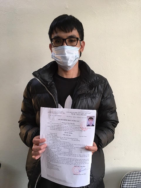 Đối tượng Huy tại cơ quan Công an.