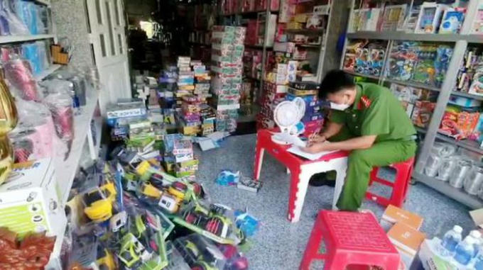 Qua kiểm tra, công tác Tổ phát hiện cửa hàng có mua bán 543 mặt hàng đồ chơi trẻ em có nguồn gốc xuất xứ Trung Quốc, nhưng không có tem nhãn phụ, không có dấu hợp quy hợp chuẩn theo quy định của pháp luật. Chủ của hàng là ông Lê Ngọc Tuấn (SN 1960) trình bày mua số đồ chơi trẻ em trên từ một công ty tại quận 6, TP Hồ Chí Minh.