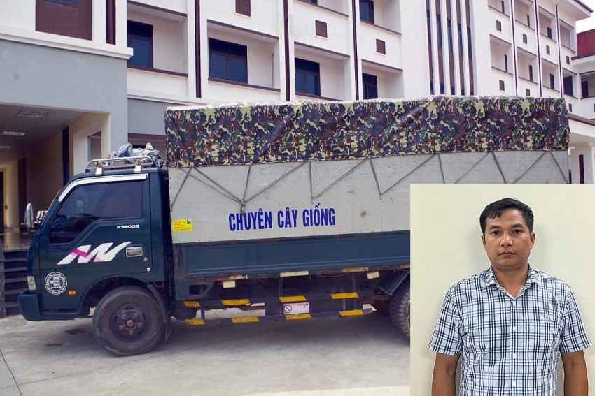 | Tài xế Nguyễn Văn Hưng và phương tiện gây tai nạn. (Ảnh: Công an Tuyên Quang). |