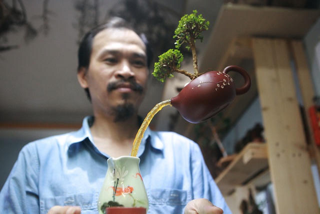 Thường anh Huỳnh chọn những cây sống trong nhà để gắn vào tác phẩm