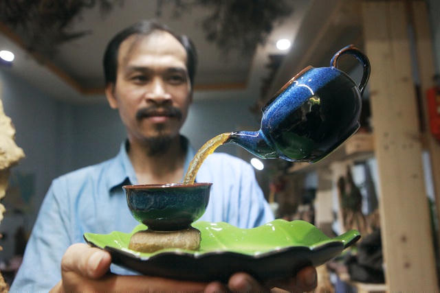 Tác phẩm ấm trà họa bì của Bát Tràng, nhìn như đang rót nước rất là tự nhiên
