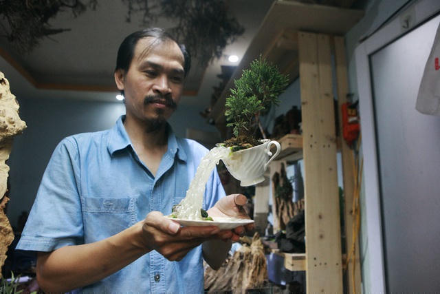 Thường anh Huỳnh chọn những cây sống trong nhà để gắn vào tác phẩm