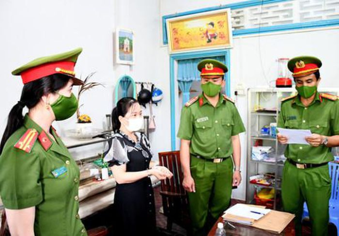 Công an đọc lệnh bắt giam Cao Thị Ngọc Mai. Ảnh: báo, Công an nhân dân