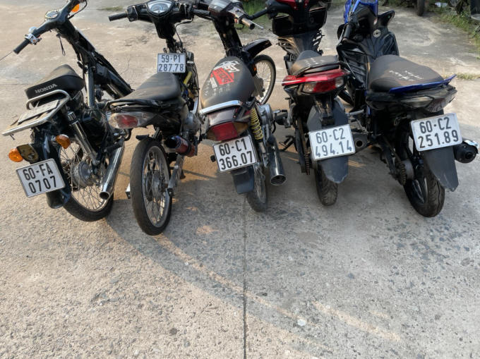 Lực lượng chức năng đã thu hồi 01 xe ô tô tải ben, nhãn hiệu Suzuki, màu nâu, gắn biển kiểm soát: 60S-4320; 03 xe mô tô, gồm: 01 xe nhãn hiệu Super Dream, biển kiểm soát 60K7-7644, 01 xe nhãn hiệu Exciter, màu tím, biển kiểm soát: 59P1-28778, 01 xe cub, biển kiểm soát: 60FA-0707; 02 bánh mâm và vỏ xe mô tô; 06 bình nhớt; 01 đồng hồ; 07 điện thoại di động; 01 Laptop và số tiền mặt 19 triệu đồng.